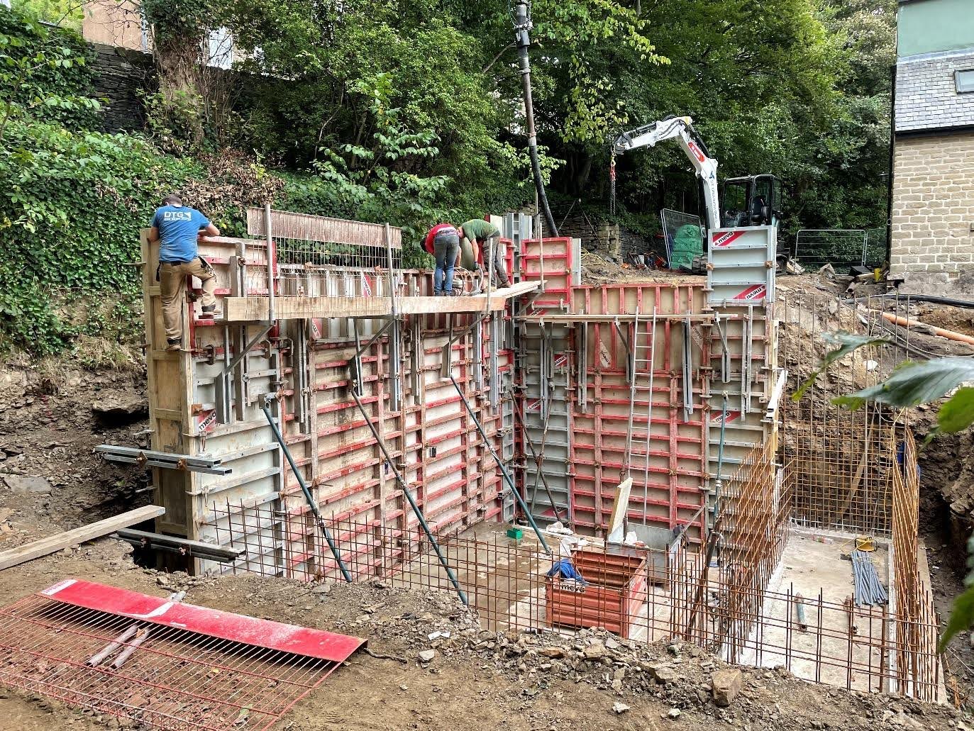 After curing, the formwork is stripped to reveal the completed concrete retaining wall. Depending on the project’s requirements, we can also apply waterproofing or tanking systems to protect against groundwater ingress and install effective drainage behind the wall to manage water pressure. The area is then backfilled and reinstated to achieve a seamless finish.